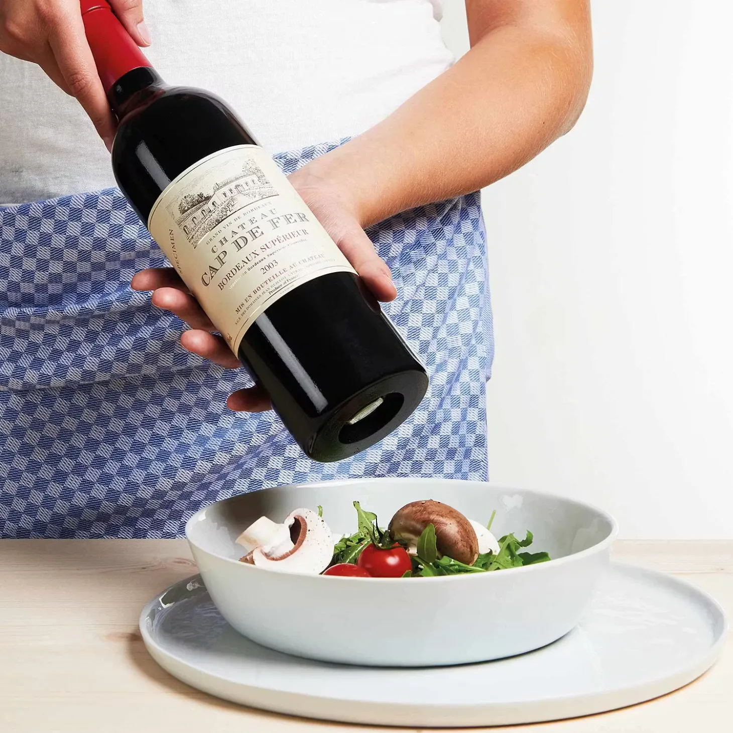 - Weitere Qualitätsmerkmale: Es gibt Rotweine mit einer leichten Pfeffernote. Wer zu dieser Flasche greift, erhält jedoch Pfeffer pur. Denn was einer echten Weinflasche mit aufgeklebtem Etikett und roter Kapsel zum Verwechseln ähnlich sieht, ist eine hochwertige Pfeffermühle aus Holz mit Metall-Mahlwerk. Eine Überraschung, die es in sich hat. In dieser Ausführung exklusiv bei Butlers erhältlich. Ohne Inhalt.